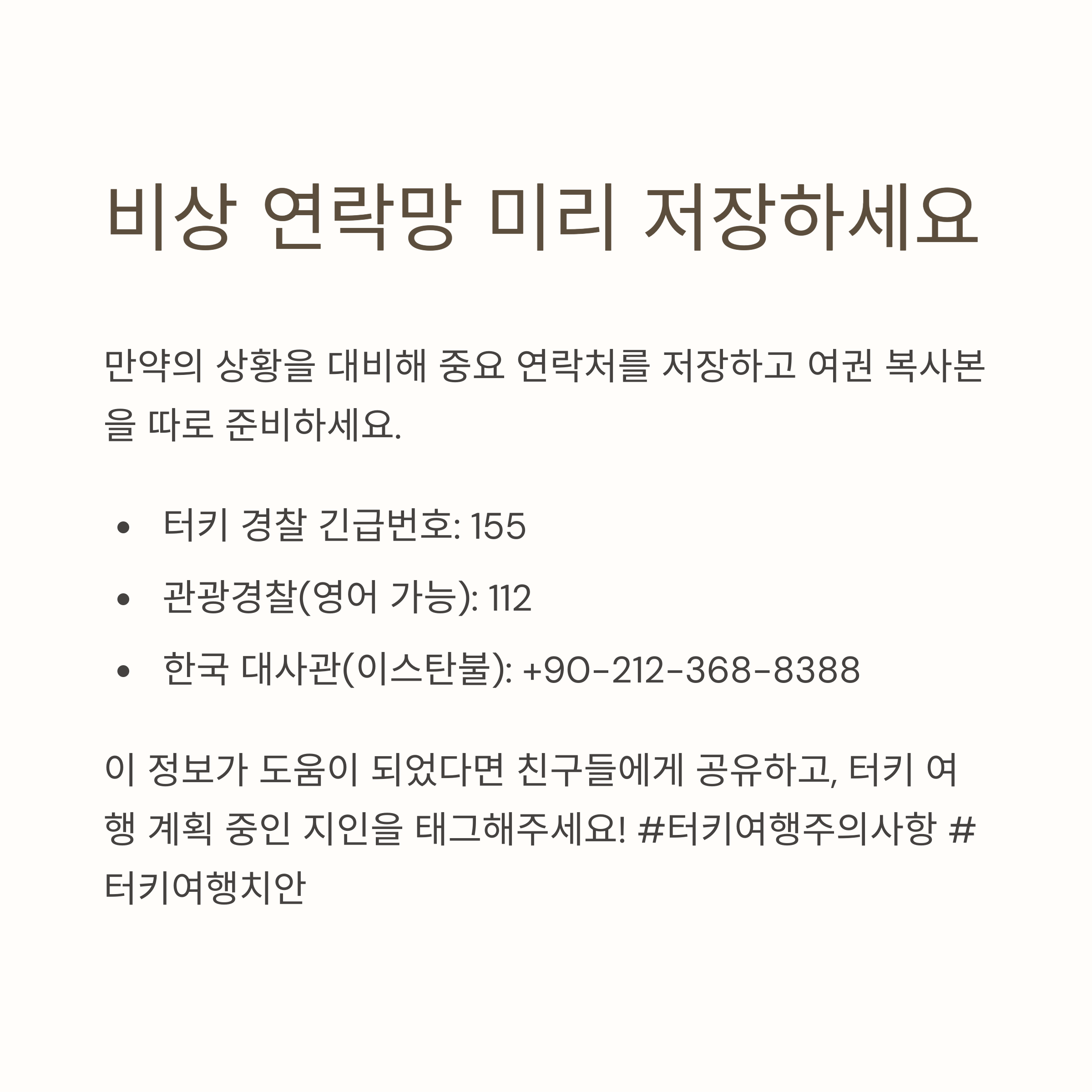 - 한국 대사관(이스탄불): +90-212-368-8388