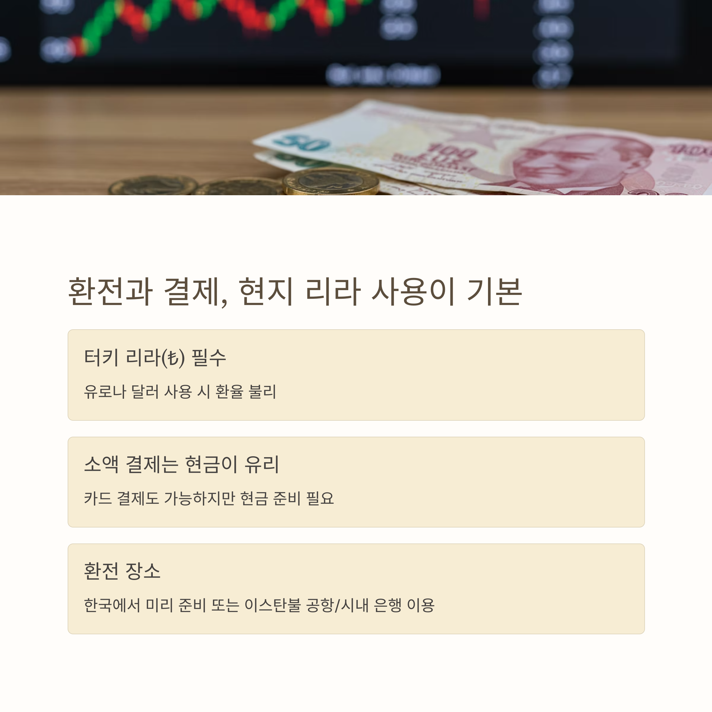 이스탄불 공항 또는 시내 은행에서 환전하세요."