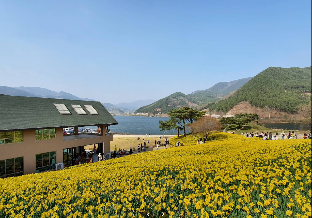 노랗게 물든 수선화 밭과 넓은 초원이 한눈에 들어오는 뷰가 정말 아름답답니다💛